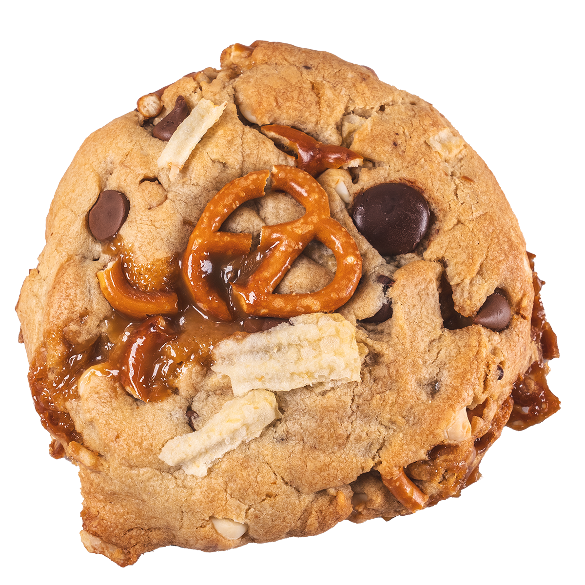 Loaded with milk, dark, and white chocolate chips, pretzels, potato chips, caramel and a hint of ground coffee. Topped with the same sweet and salty mix for the ultimate Kitchen Sink!